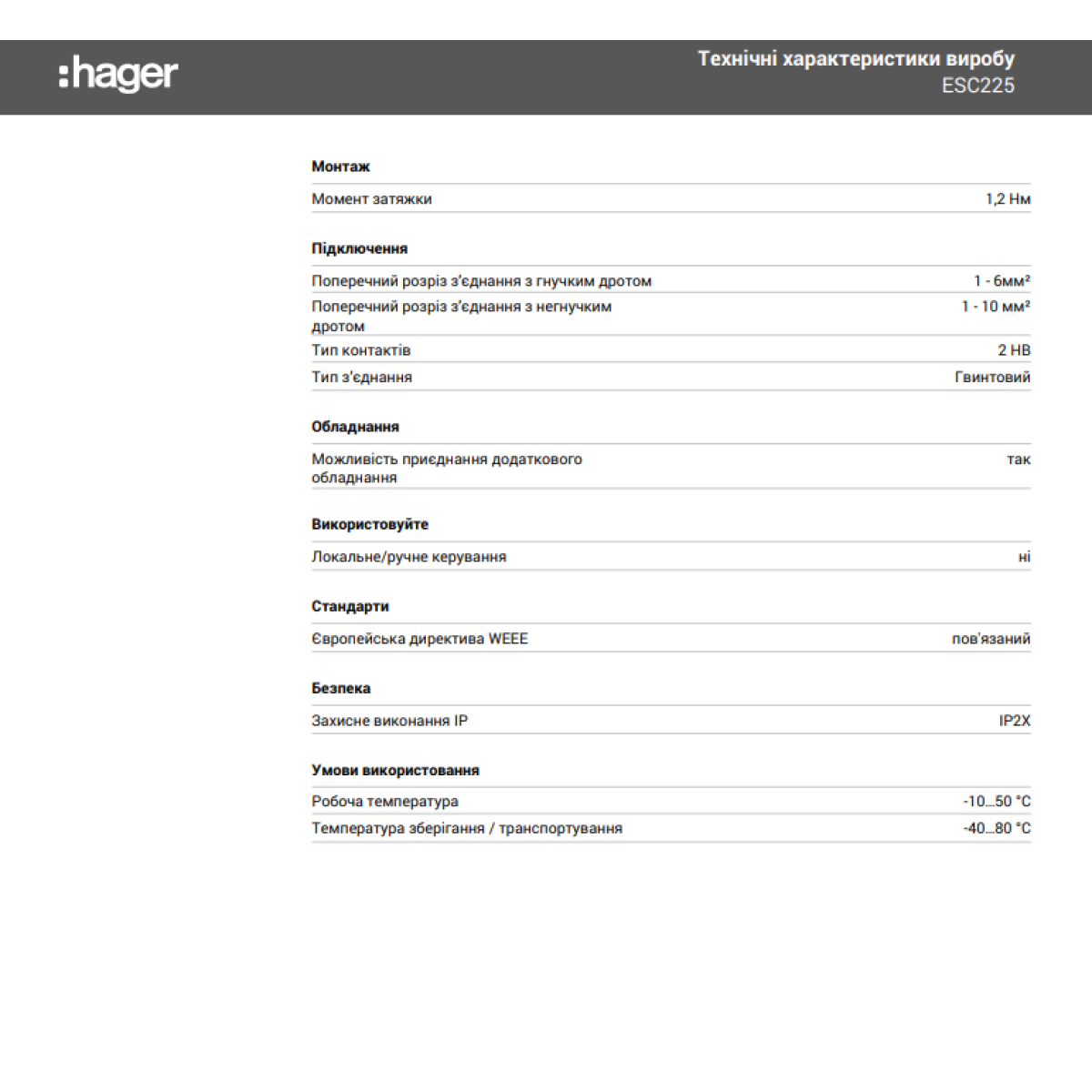 Контактор модульний ESC225 25А 230В AC 2НО, Hager повністю сертифікований, виконаний за міжнародними стандартами якості та відповідності. Знайшов активне застосування також у опалювальних та нагрівальних системах. Правильний вибір такого обладнання з урахуванням навантаження, умов експлуатації дає можливість максимально користуватися ресурсом роботи контактора та продовжити загальний термін їхньої служби. Все це дозволяє приладу успішно та безвідмовно відпрацювати не один рік. Модульні контактори працюють з напругою до 660 Вольт і струмами до 100 Ампер. Вони можуть бути і пускачами, але для цього в ланцюг слід додати теплове реле, яке також захищає двигуна від перевантажень і коротких замикань. З допомогою контакторів можна зібрати реверсну чи традиційну схему регулювання електромоторами.
