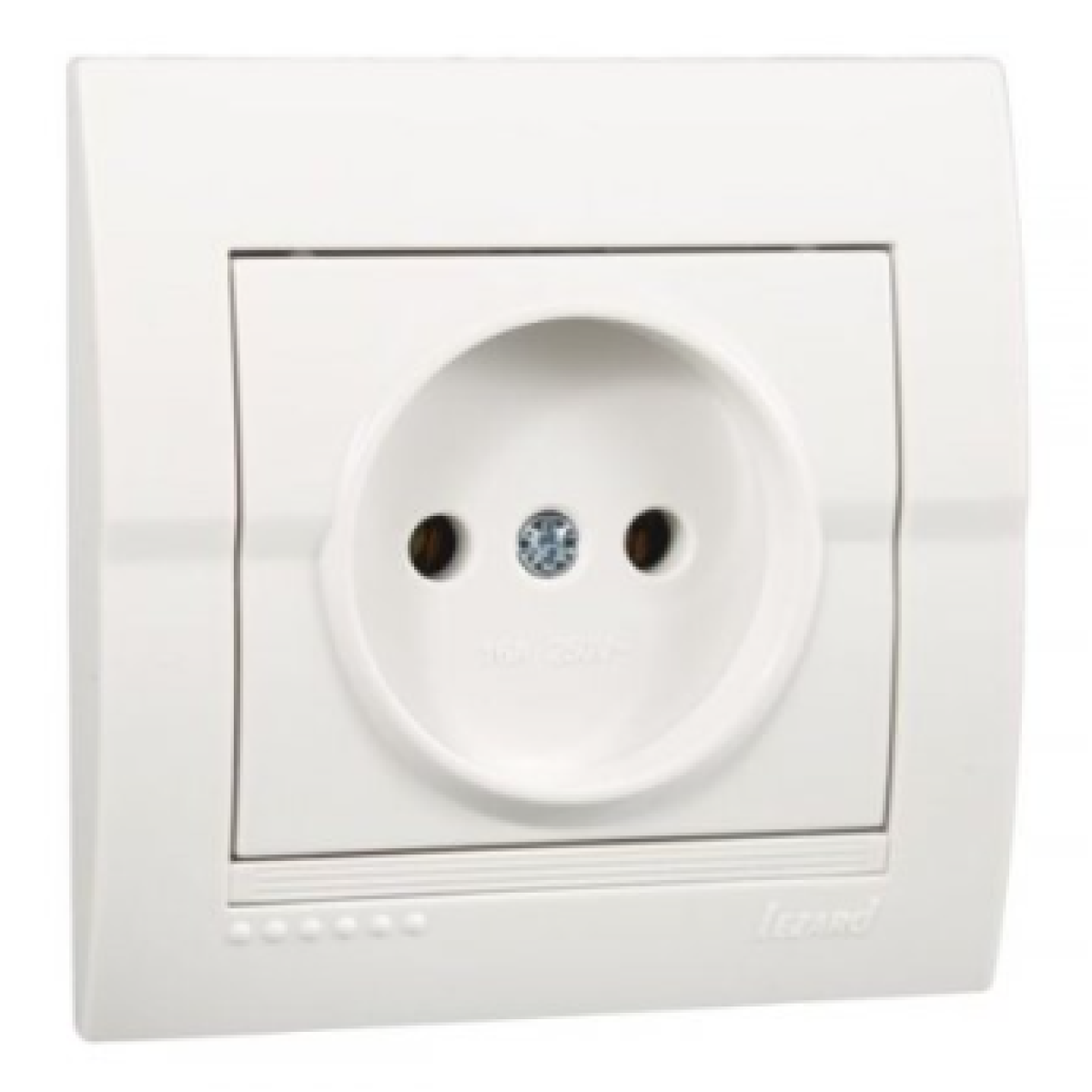 Розетка без заземлення колір білий DERIY Lezard призначена для підключення електричних приладів до мережі.