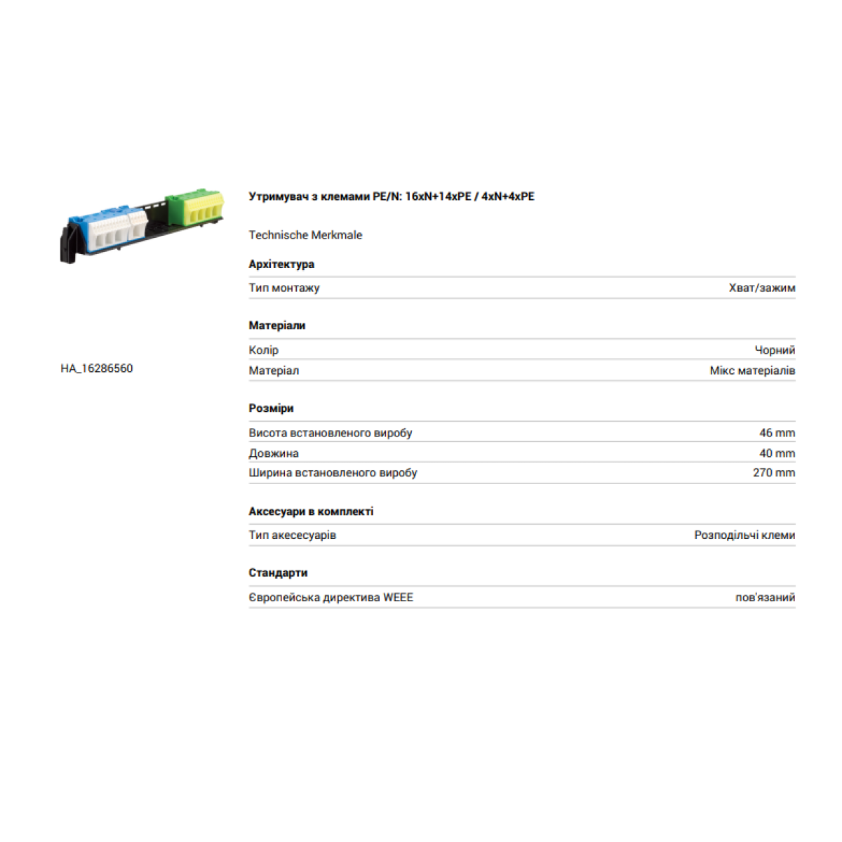 Тримач із клемами PE/N Hager VZ462 16xN+14xPE / 4xN+4xPE