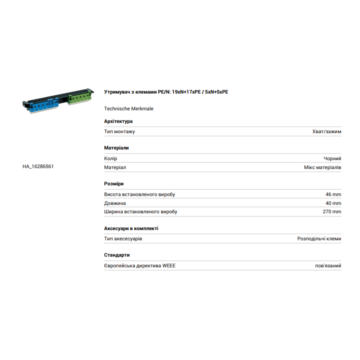 Тримач із клемами PE/N Hager VZ463 19xN+17xPE / 5xN+5xPE