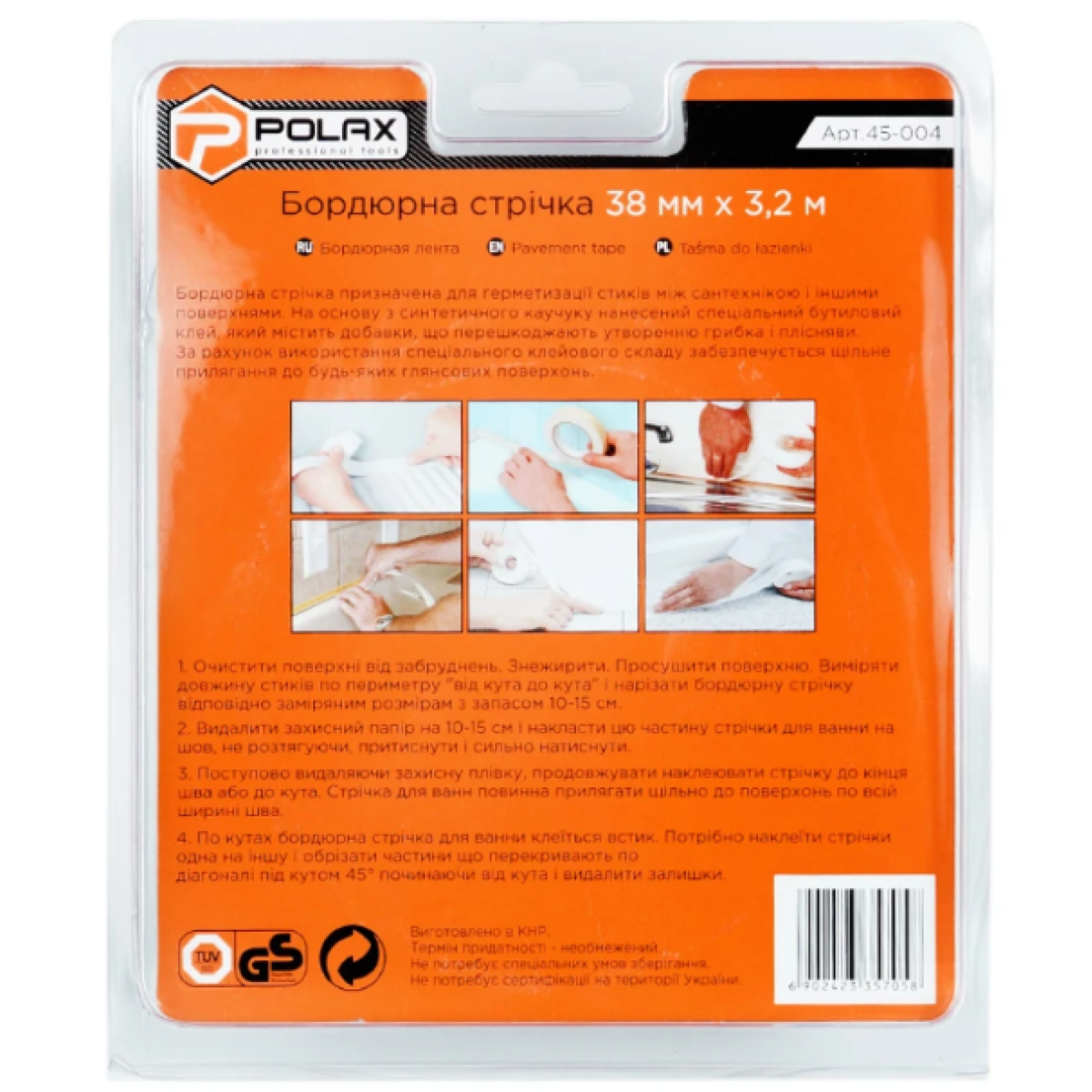 Бордюрна стрічка Polax для ванної, біла 38 мм х 3,2 м