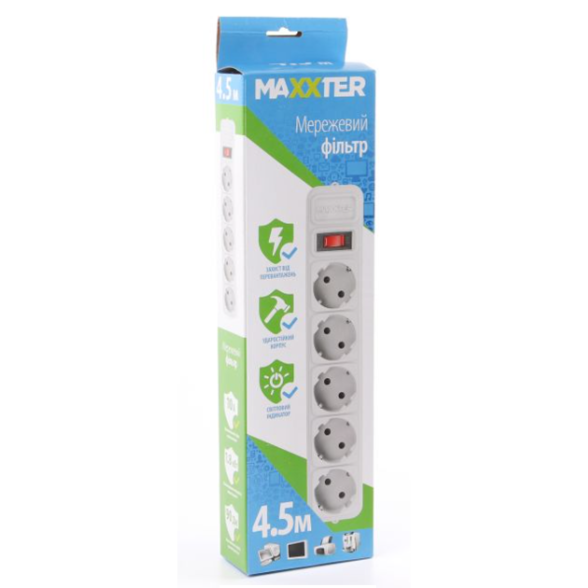 Мережевий фільтр 5 гнізд 4.5 м Maxxter