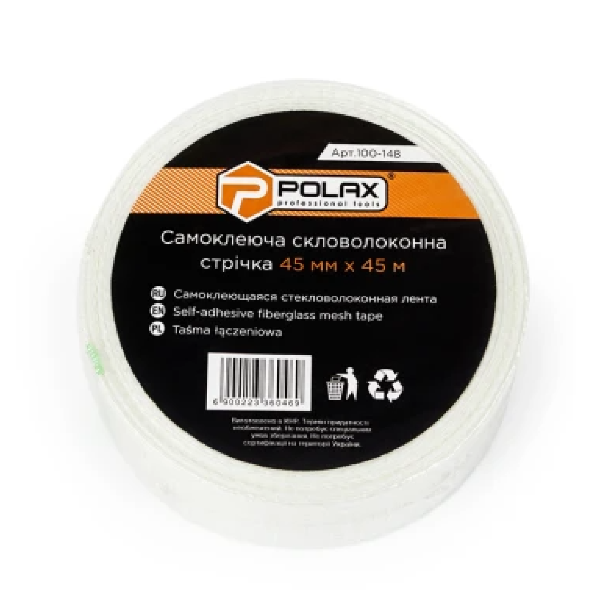 Стрічка серпянка Polax самоклеюча скловолоконна для стиків 45 мм х 45 м