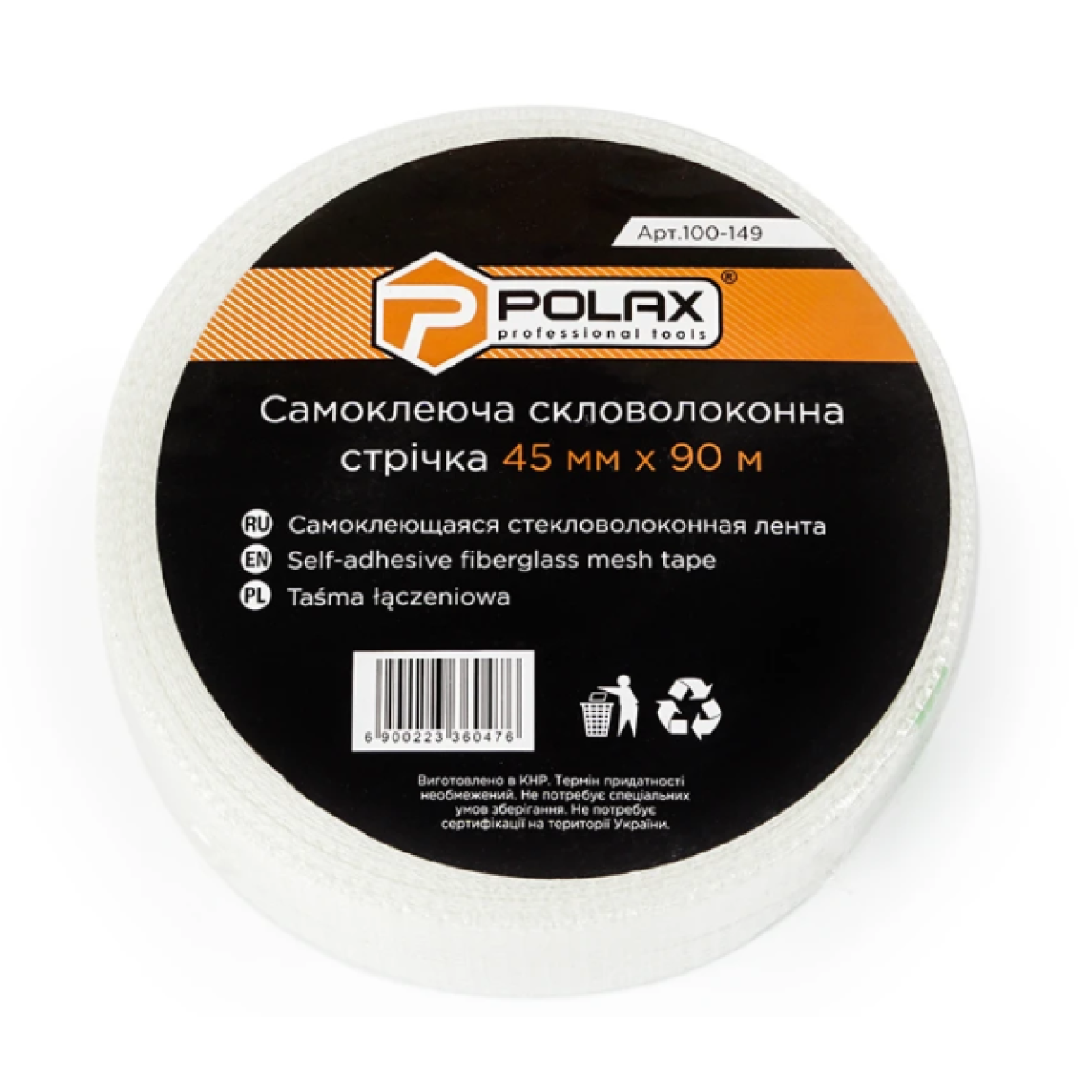 Стрічка серпянка Polax самоклеюча скловолоконна для стиків 45 мм х 90 м