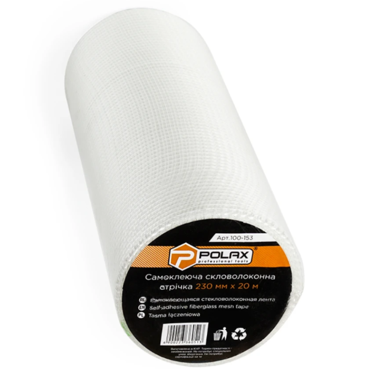 Стрічка серпянка Polax самоклеюча скловолоконна для стиків 230 мм х 20 м