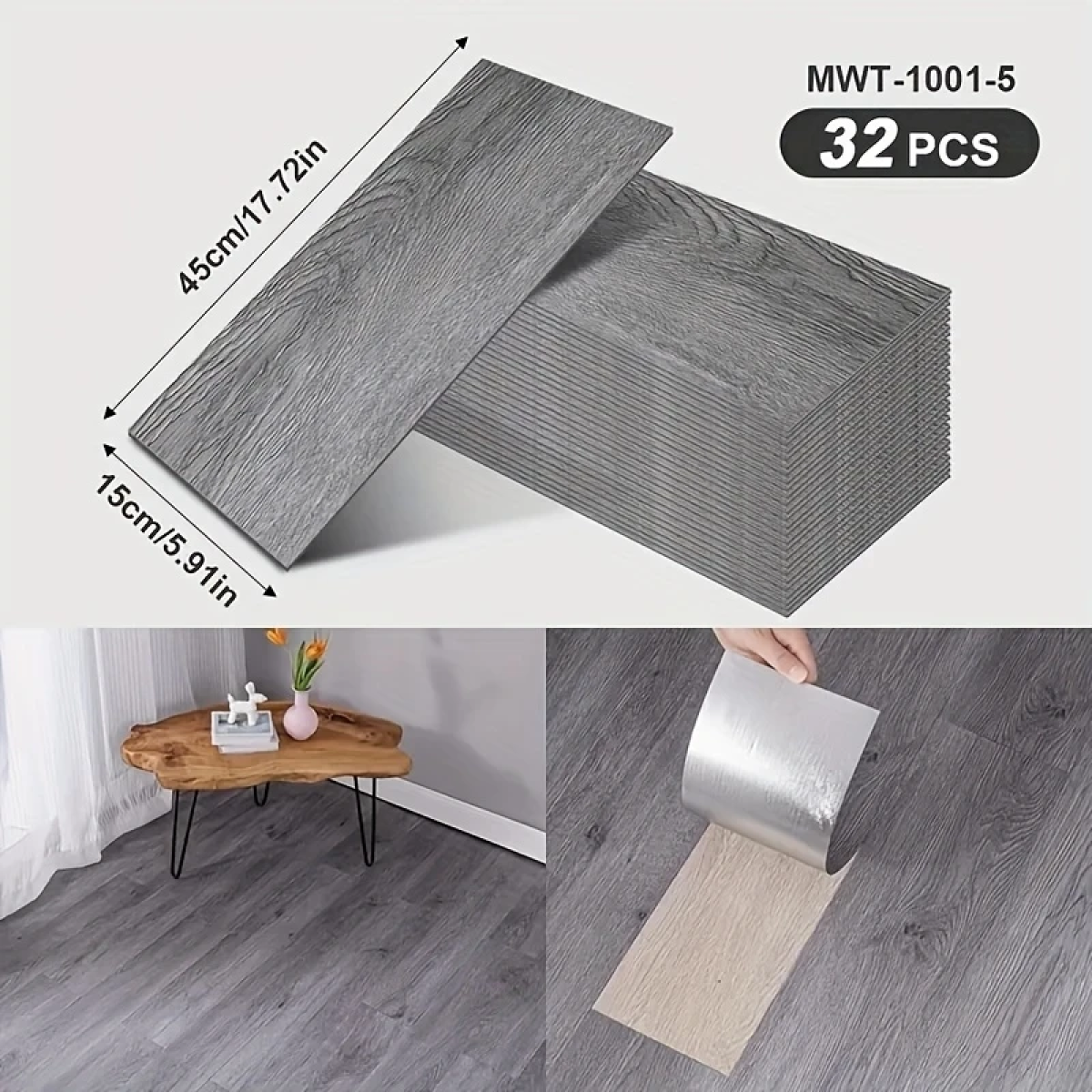 Самоклеючі вінілові плитки для підлоги 45х15 см