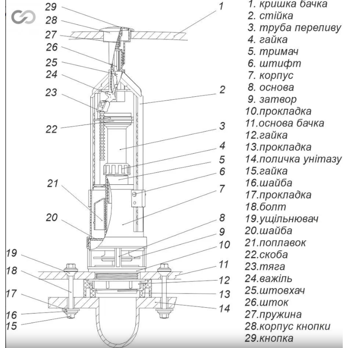 Арматура для змивних бачків з боковим підводом води SoloPlast