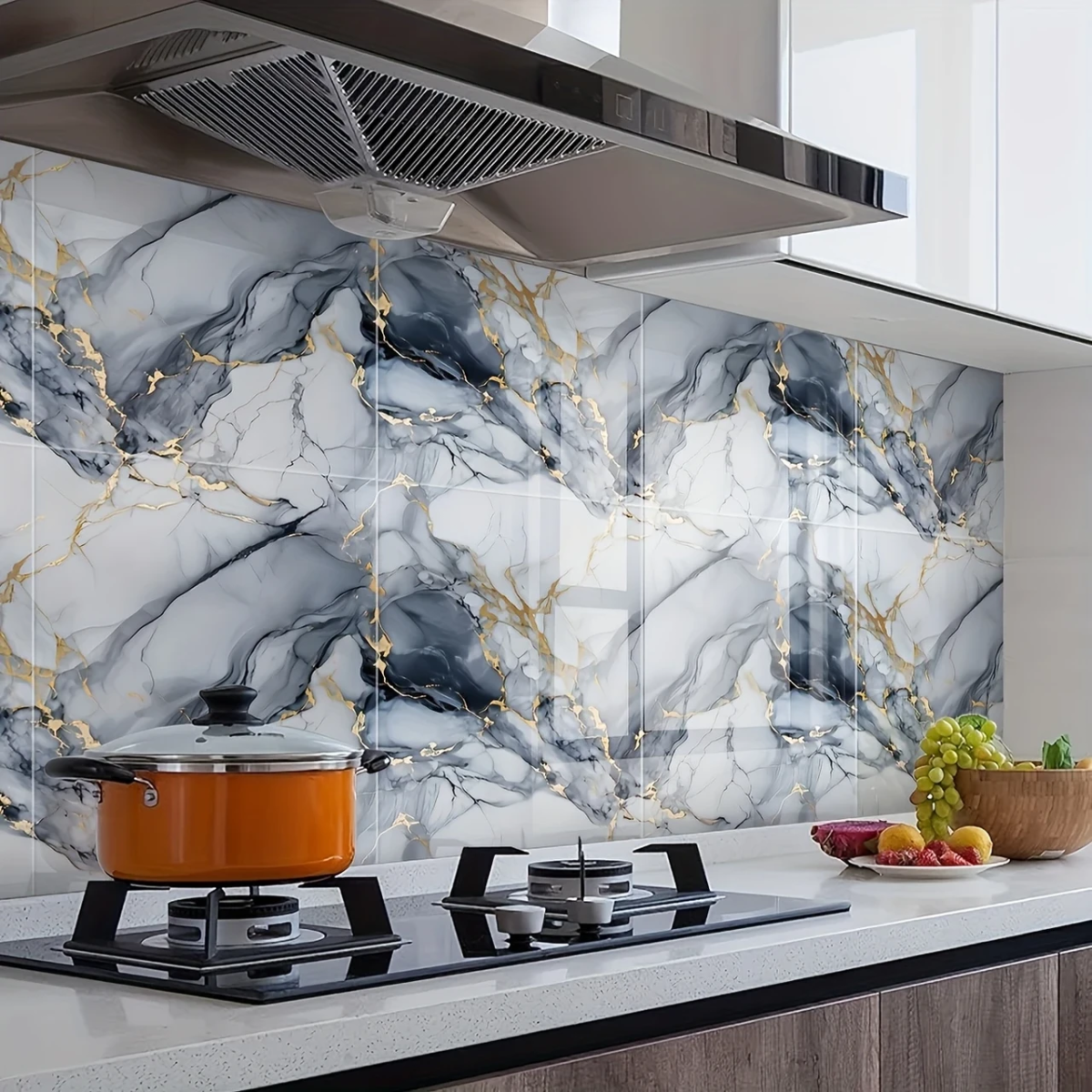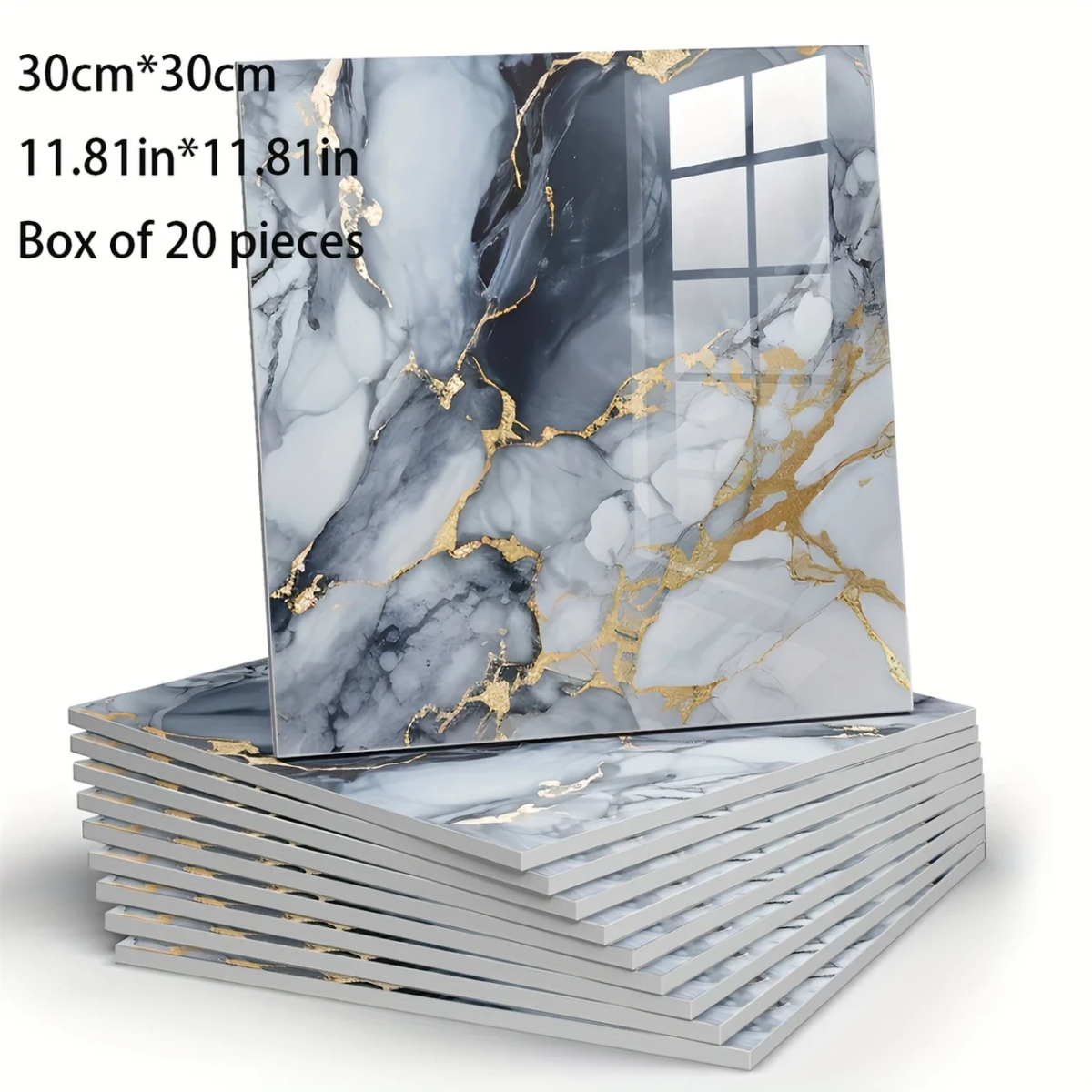 Декоративні самоклеючі панелі на стіни Dark Grey (Мармур з золотом) 30х30 см