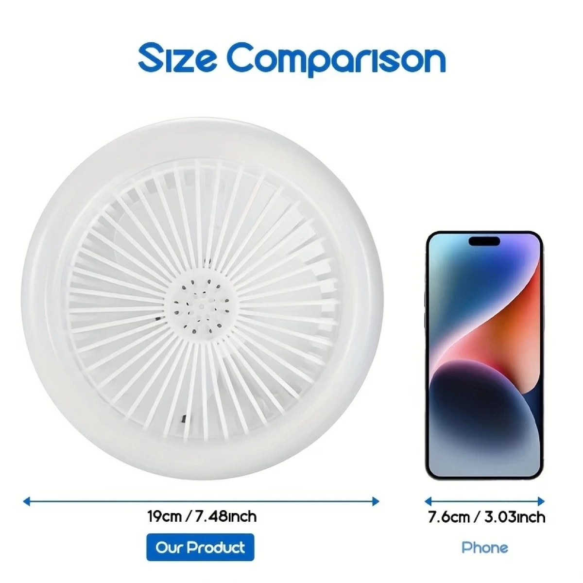 Розумний стельовий вентилятор з підсвіткою та пультом дистанційного керування - 30W LED, 3 швидкості, з регулятором температури, E26/E27 гніздо. Колір світла білий, підходить для спальні, кухні, комори.