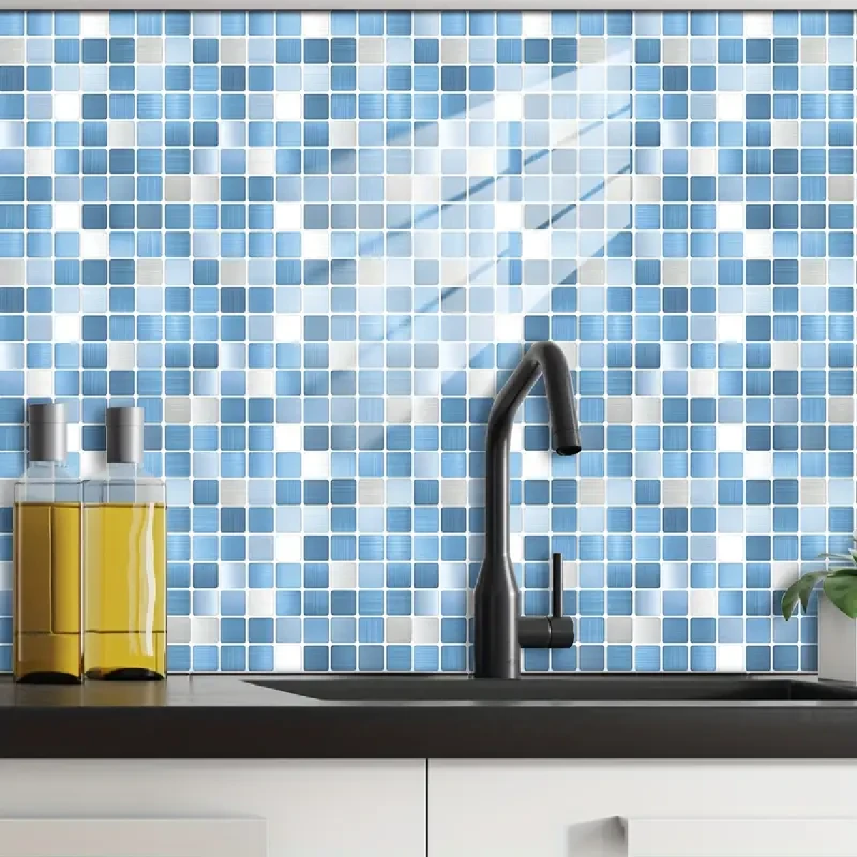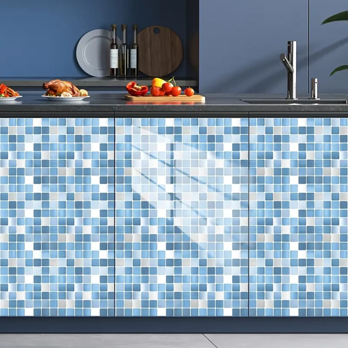 Набір з 6 штук синіх плиток на самоклейкій основі