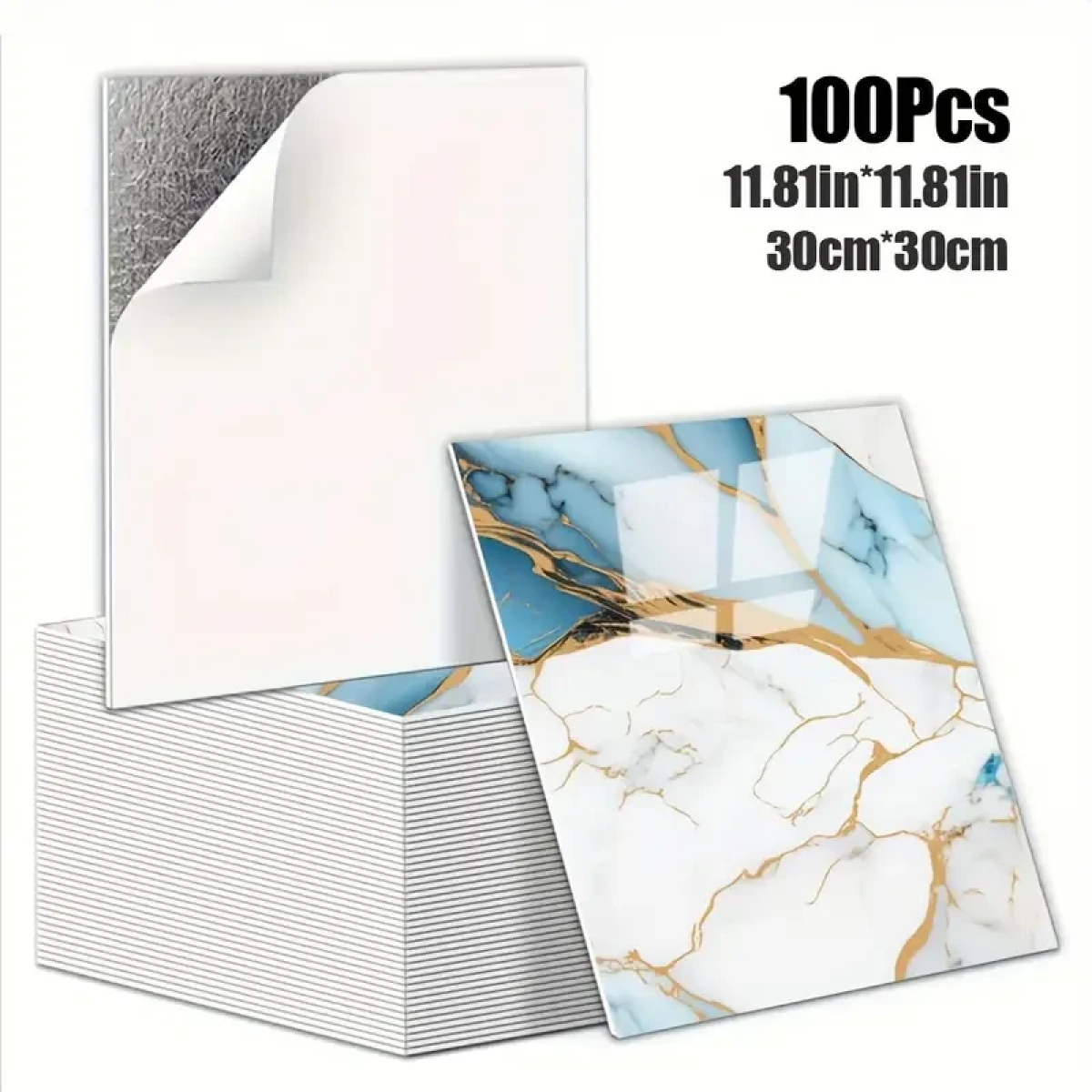 Декоративні самоклеючі панелі на стіни Dark Grey (Блакитно-золотий мармур) 30х30 см
